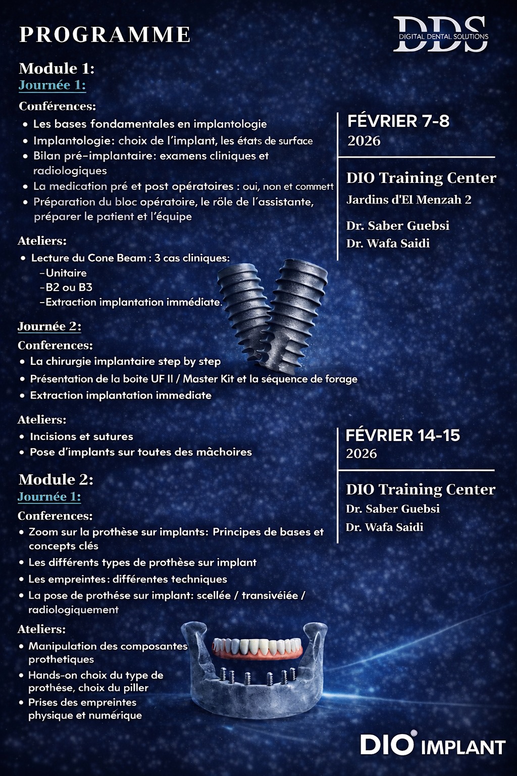 Une immersion complète dédiée à la phase prothétique, animée par Dr Wafa Saidi.
