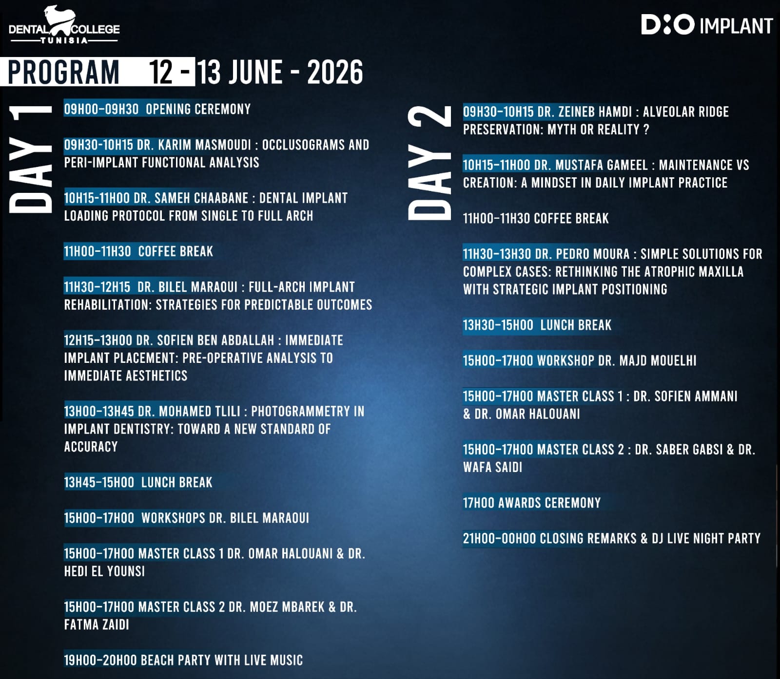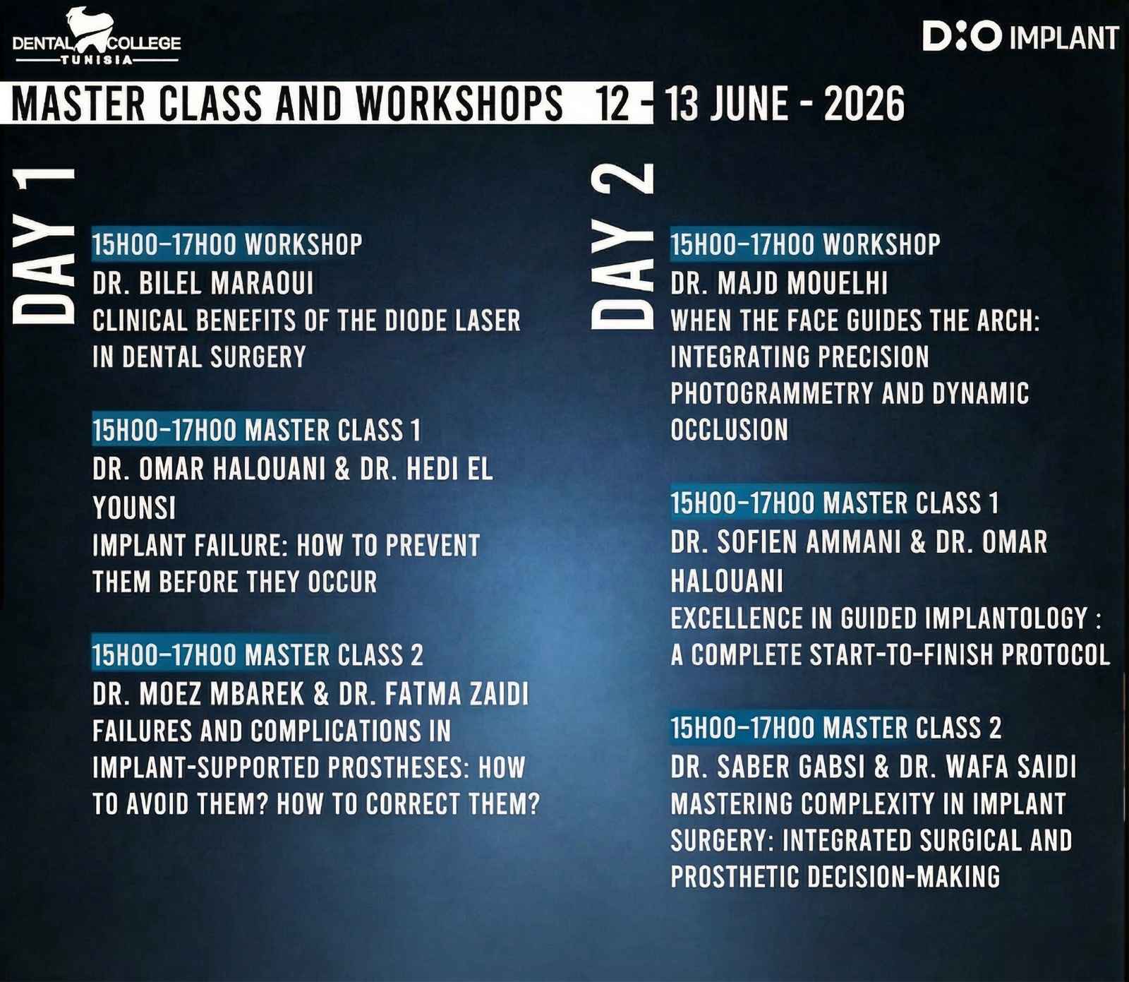 Au programme : confΓ©renciers internationaux et tunisiens, master class de haut niveau et workshops pratiques pour une expΓ©rience complΓ¨te et immersive. Une occasion unique de se former, d’échanger et de perfectionner ses compΓ©tences cliniques dans un cadre professionnel et stimulant.